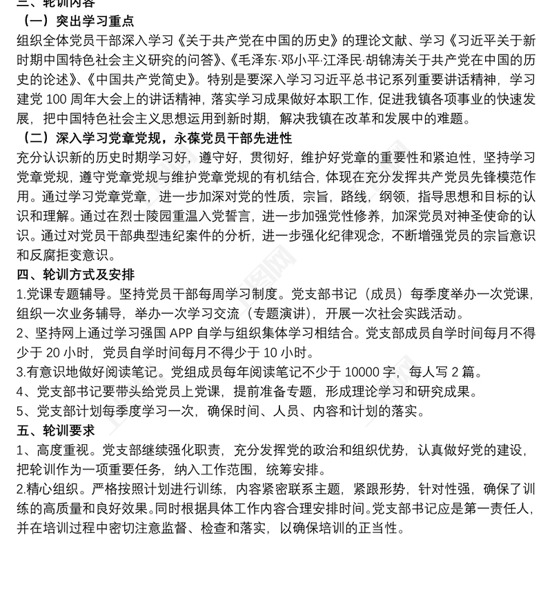 2021關于20xx年下半年黨員輪訓工作安排范文