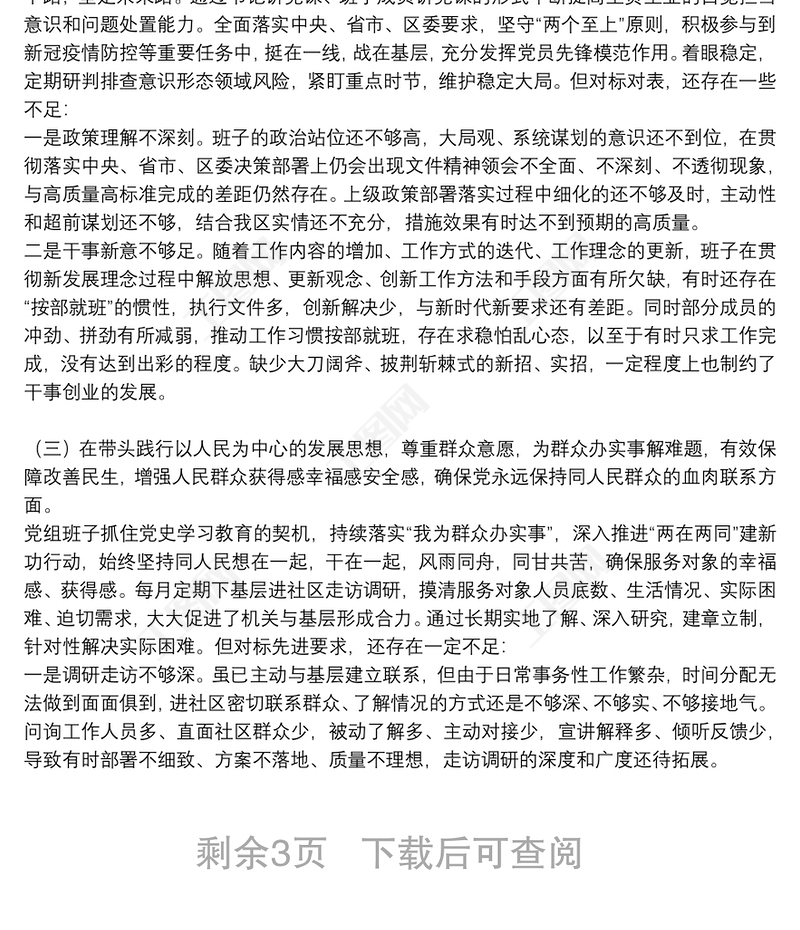 區局黨組班子2021年黨史學習教育五個帶頭專題民主生活會對照檢查發言材料 Array