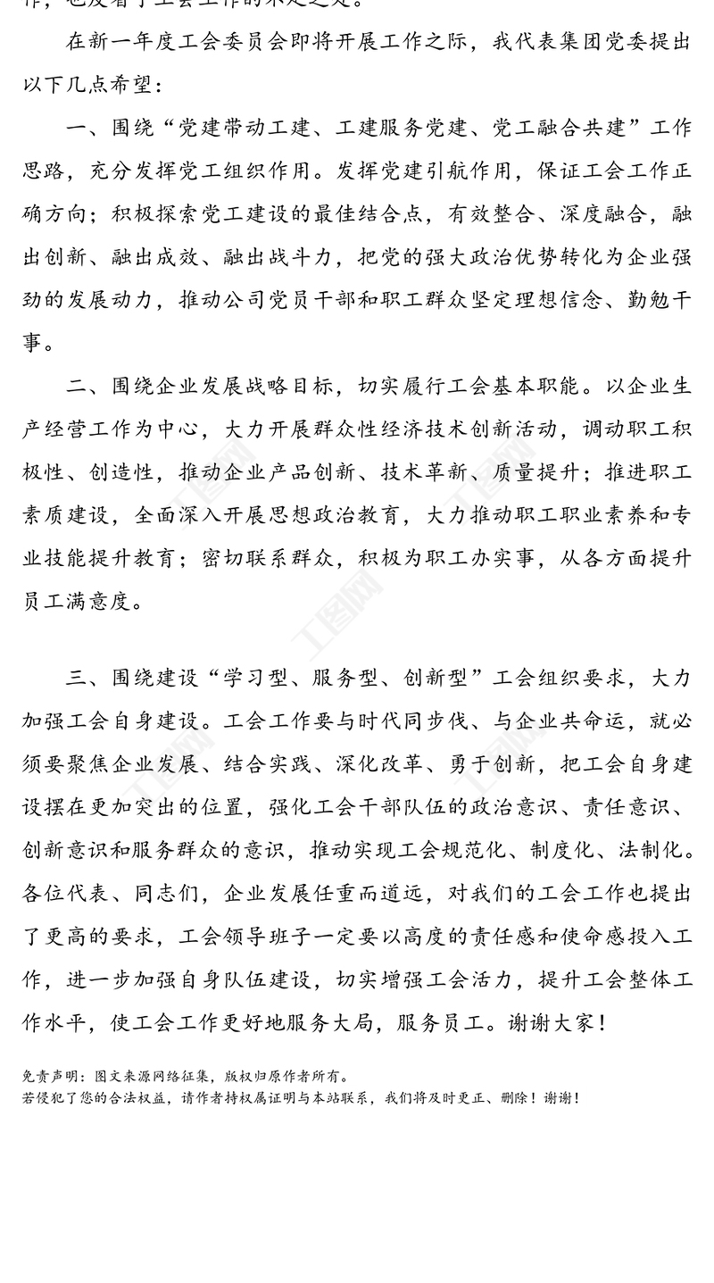 董事長、黨委書記在集團公司職工、工會會員代表大會暨工作會議上的講話包含
