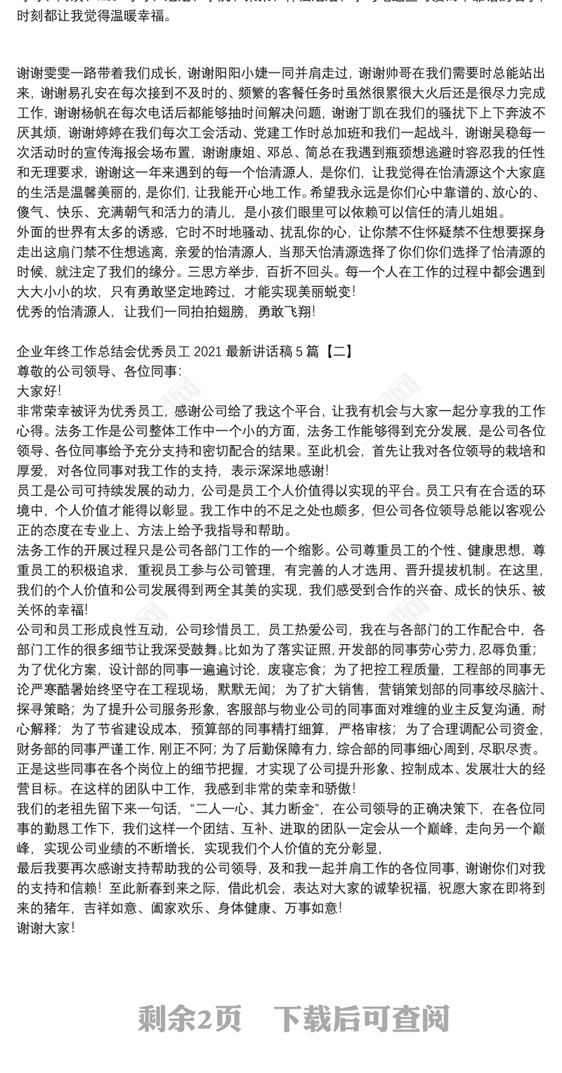 企業年終工作總結會領導2021最新講話稿5篇包含