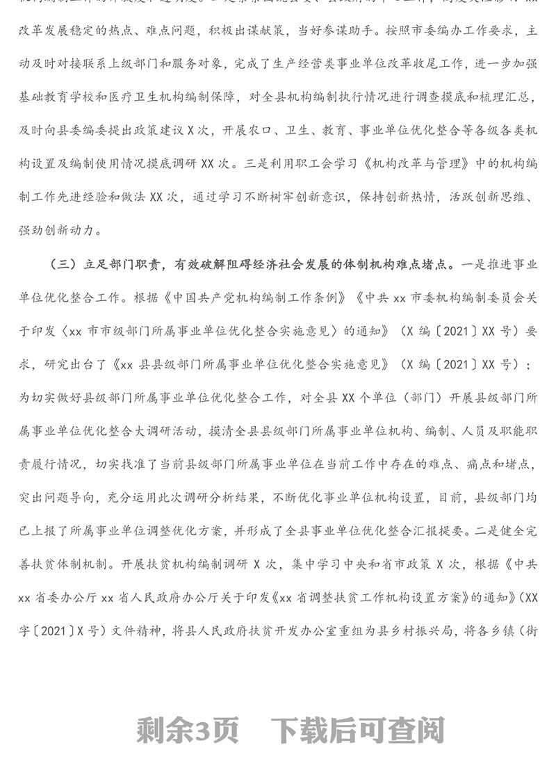 縣委機(jī)構(gòu)編制委員會(huì)辦公室2021年工作情況總結(jié)