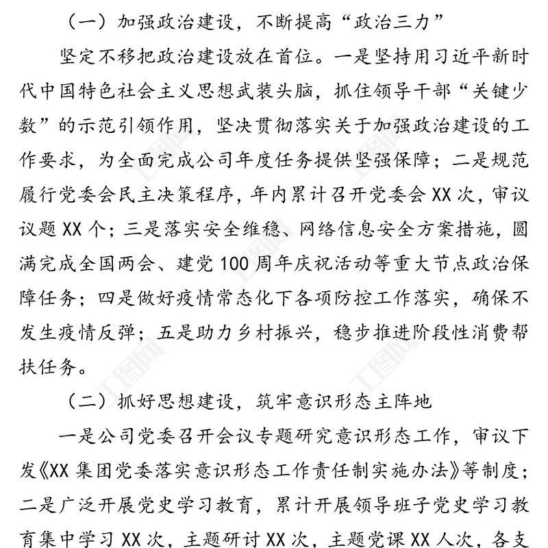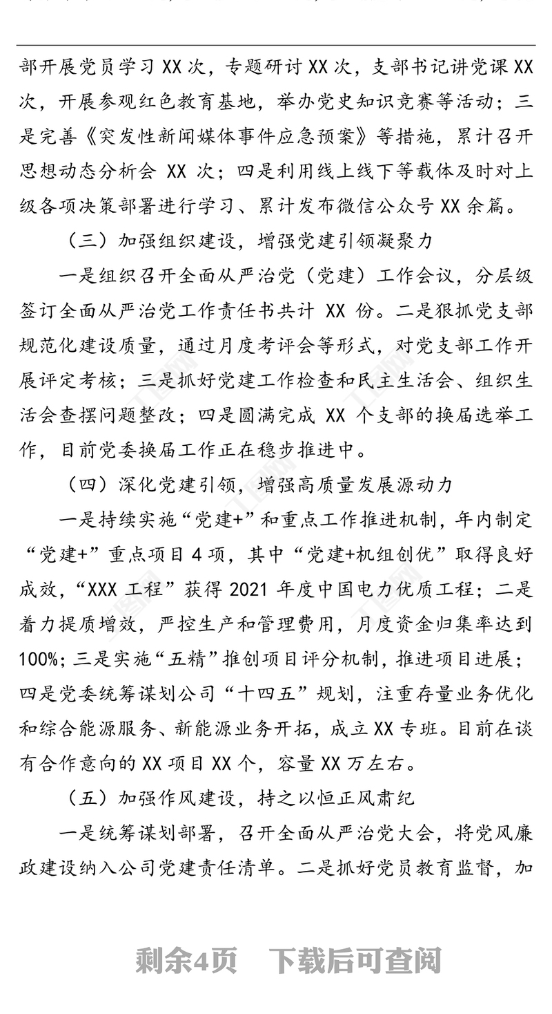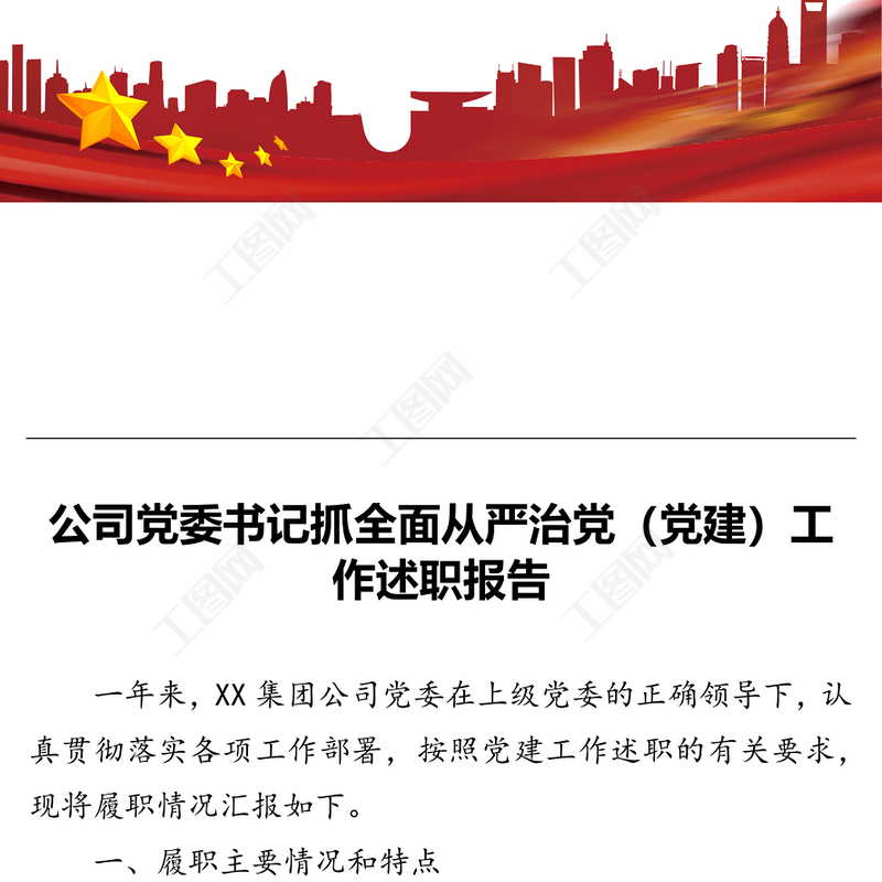 工圖網提供公司黨委書記抓全面從嚴治黨(黨建)工作述職報告供會員免費下載。更多精彩黨課PPT素材,盡在工圖網。