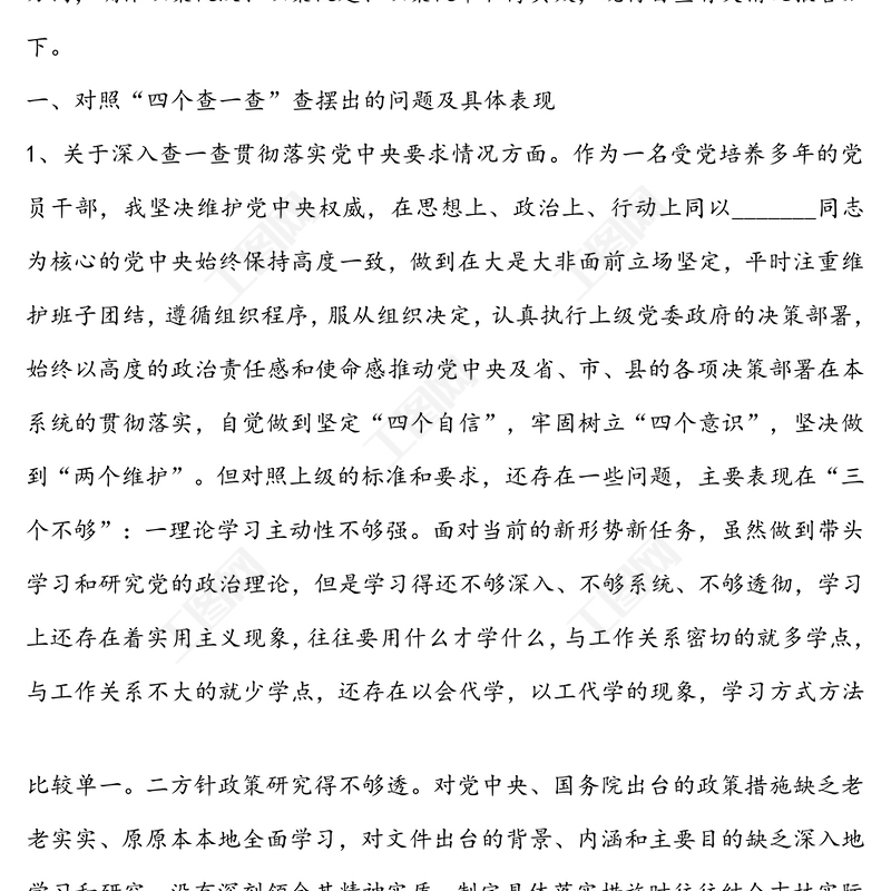 工圖網提供黨員領導干部2020年以案促改“四個查一查”自查報告供會員免費下載。更多精彩黨課PPT素材,盡在工圖網。