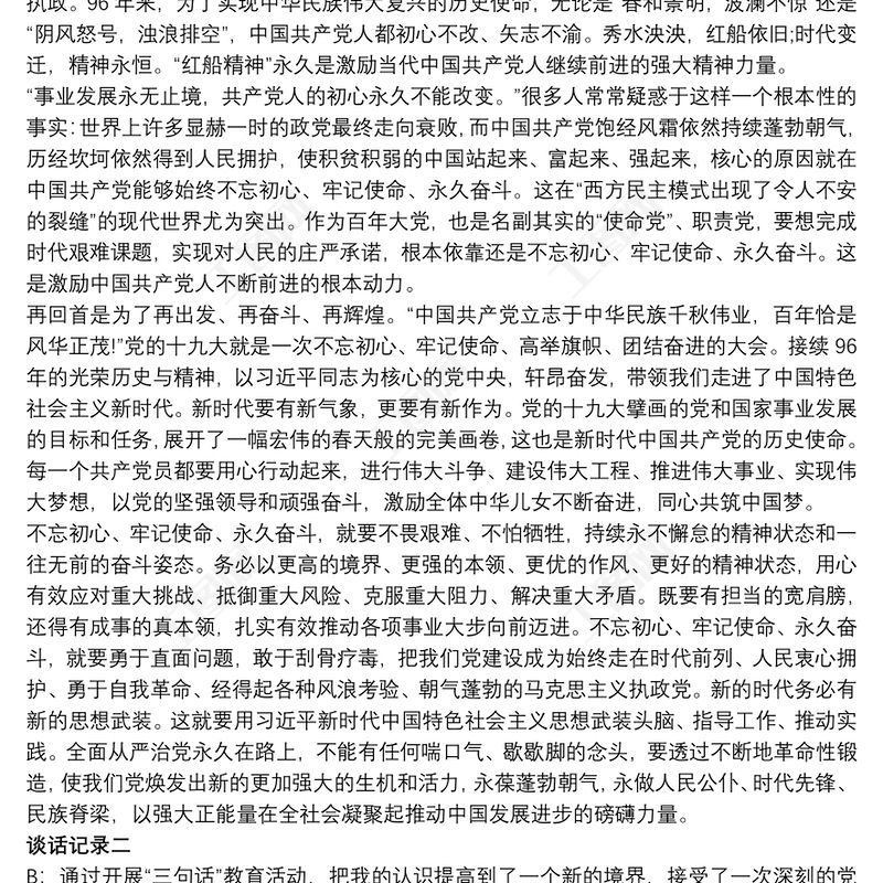 202120xx年黨支部書記與黨員干部談心談話記錄內容三篇包含