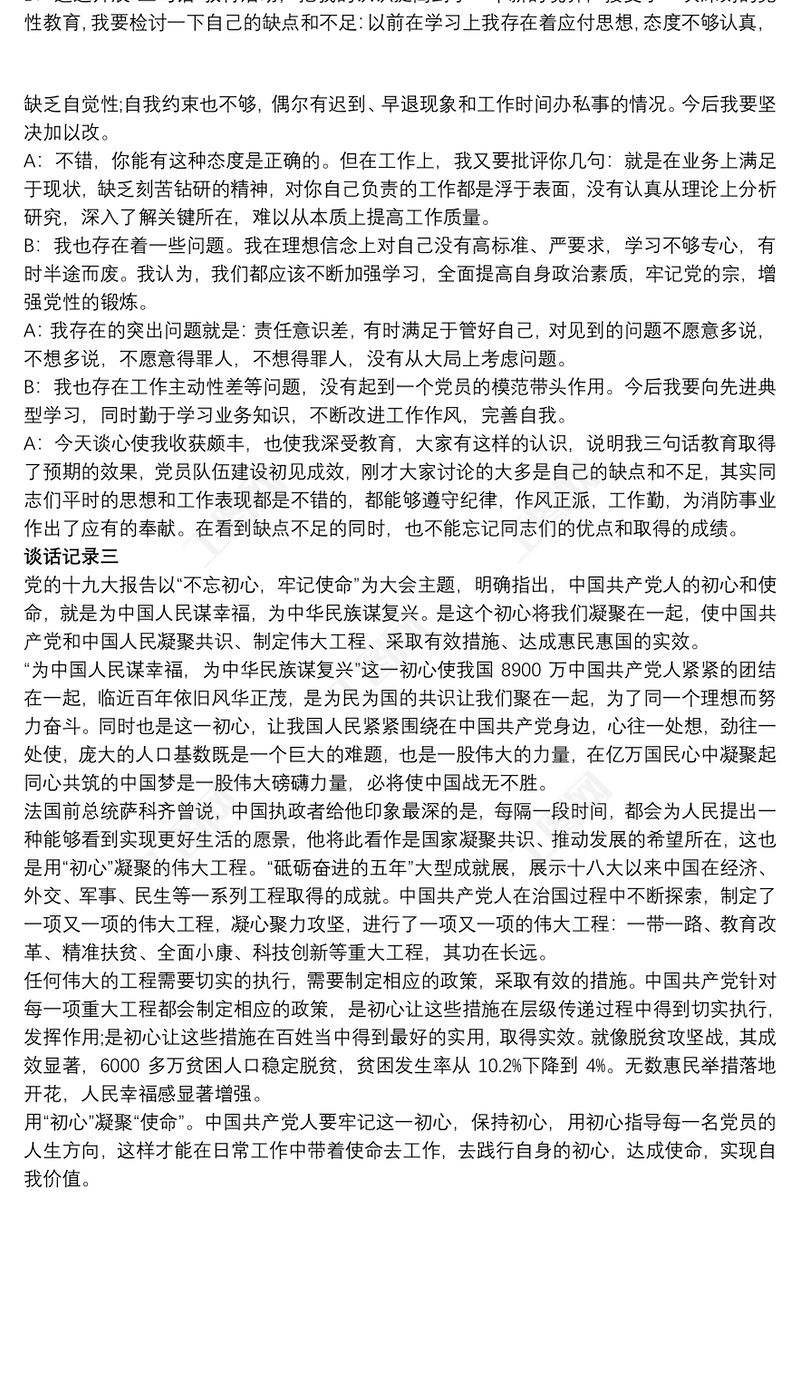 黨員談心談話記錄 談心談話三篇包含
