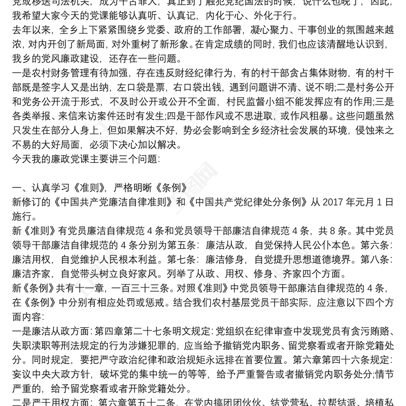 最新紀委書記黨風廉政建設黨課講稿講話精品廉潔專題黨課講稿3篇包含