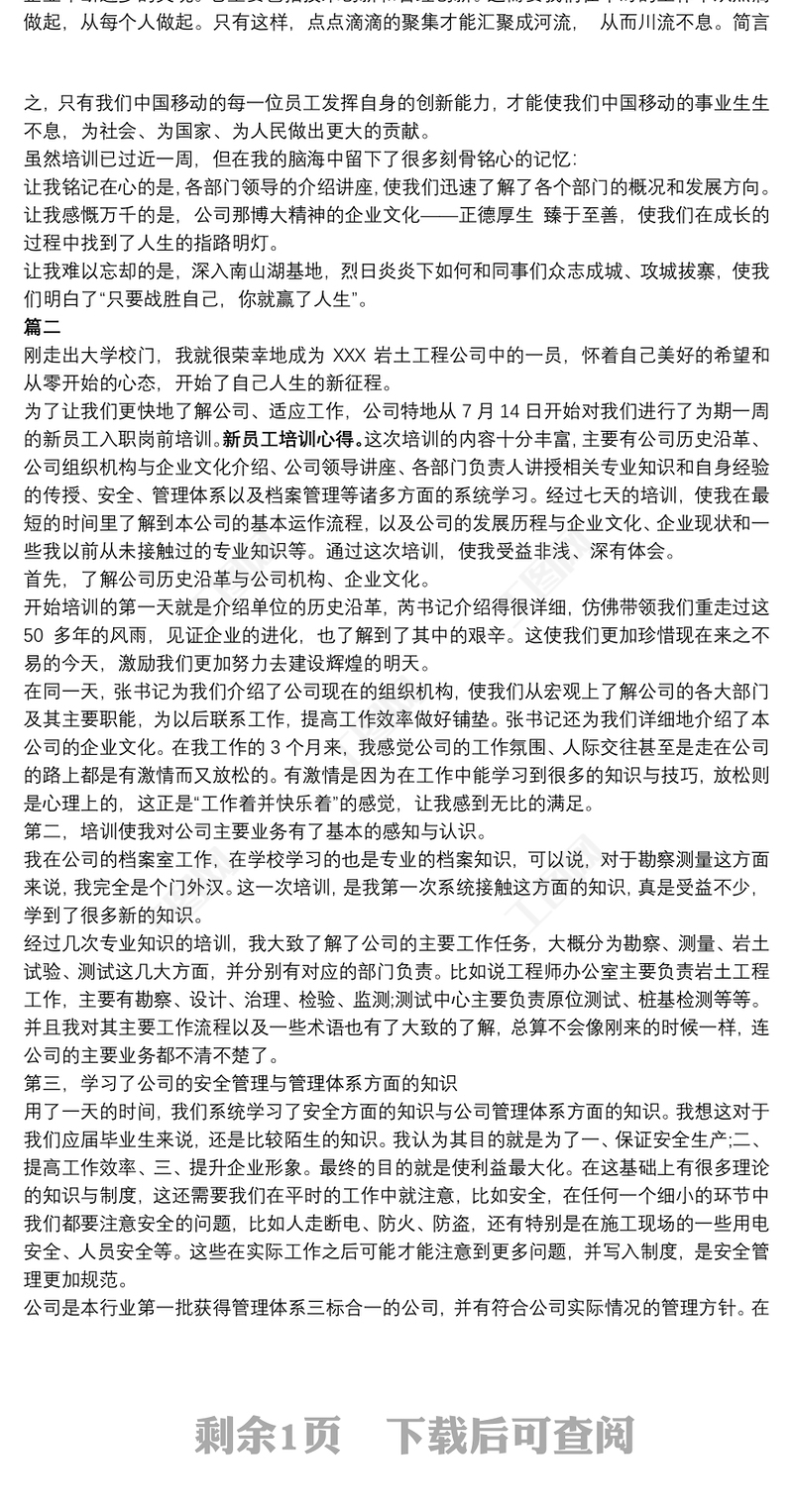 新員工入職培訓心得感悟心得體會三篇包含
