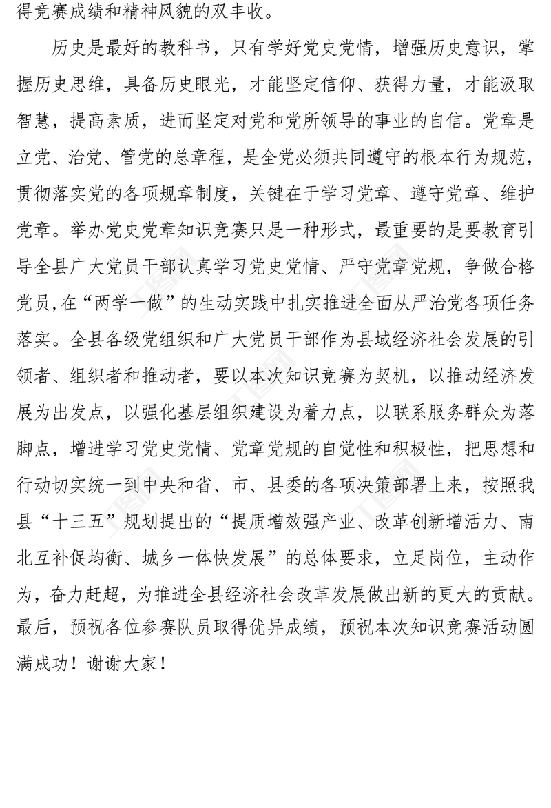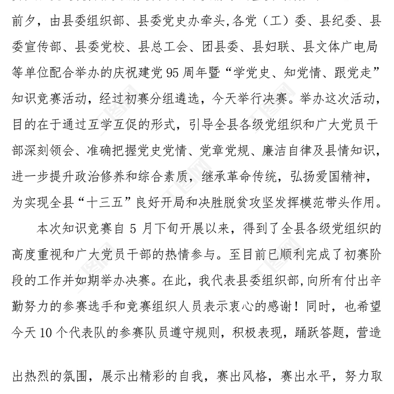 全縣慶祝建黨95周年暨“學黨史知黨情跟黨走”知識競賽致辭