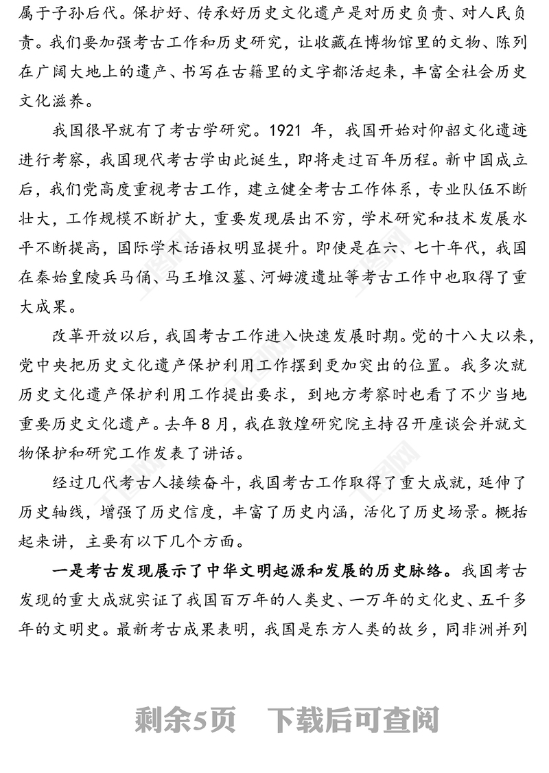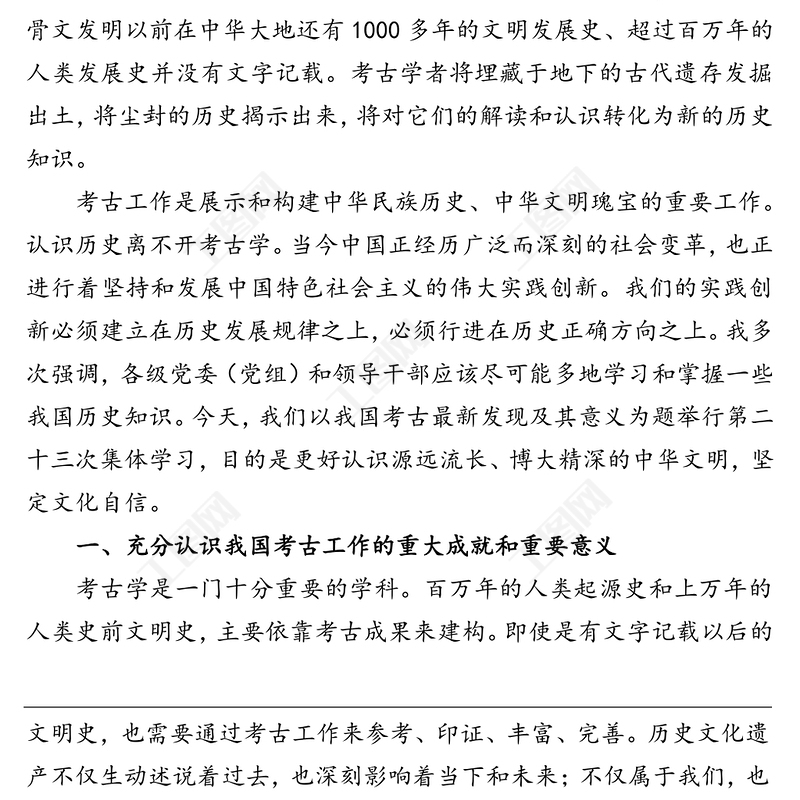 公文材料:建設中國特色中國風格中國氣派的考古學 更好認識源遠流長博大精深的中華文明,公文材料,公文 Array
