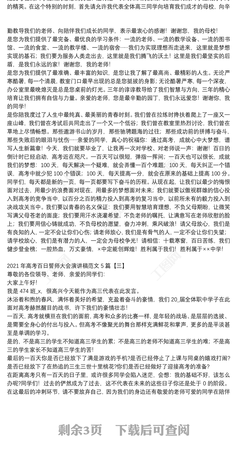 工圖網提供2021年高考百日誓師大會演講稿范文5篇供會員免費下載。更多精彩黨課PPT素材,盡在工圖網。
