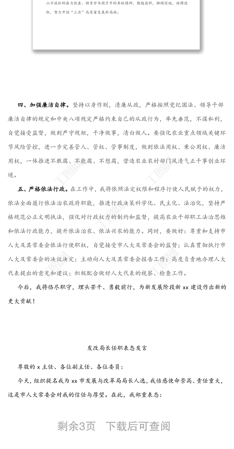 工圖網(wǎng)提供任職表態(tài)發(fā)言3篇(農(nóng)業(yè)農(nóng)村局長、發(fā)改局長、公安局長)供會(huì)員免費(fèi)下載。更多精彩黨課PPT素材,盡在工圖網(wǎng)。