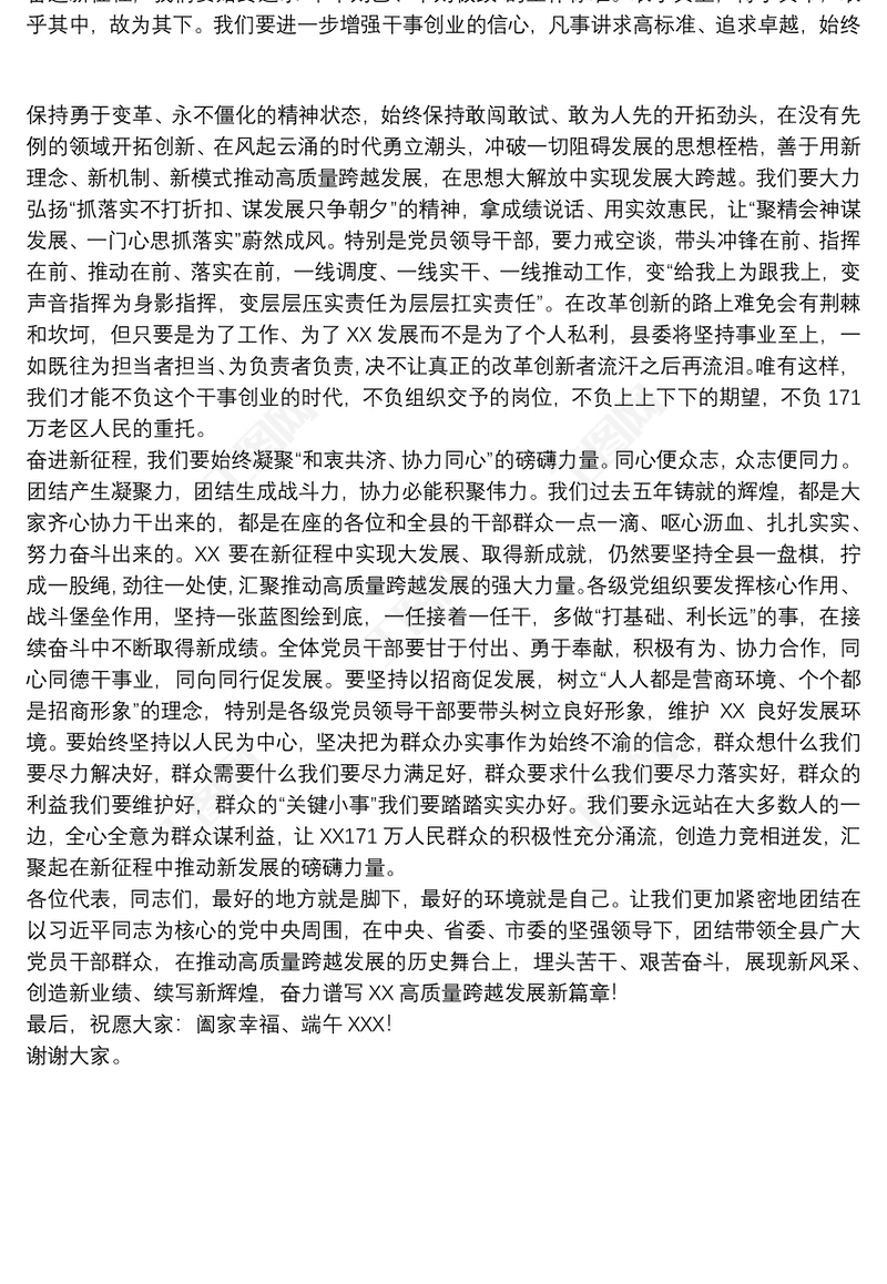 領導干部在20xx年代表大會閉幕式上的講話稿