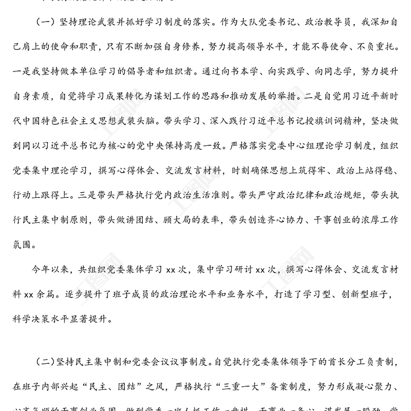 2021領導班子成員20xx年述職述責述廉報告包含