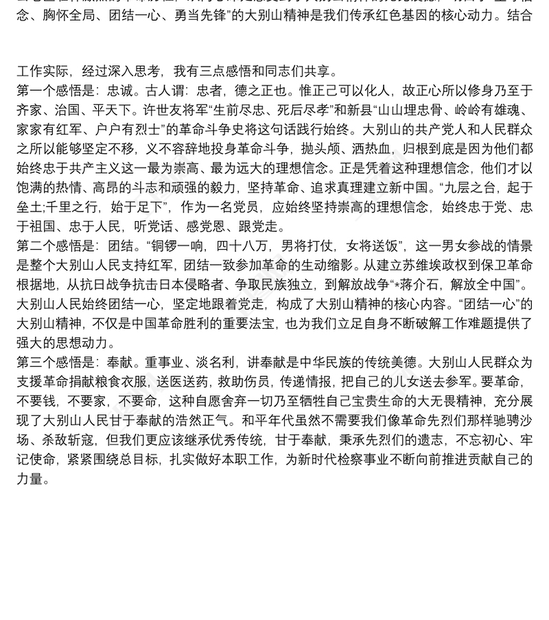 2021弘揚大別山精神心得體會三篇