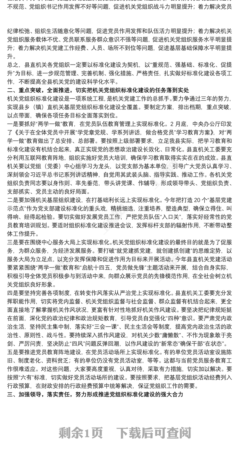 工圖網提供領導在20xx年全縣機關黨組織標準化建設工作會議上的講話范文供會員免費下載。更多精彩黨課PPT素材,盡在工圖網。