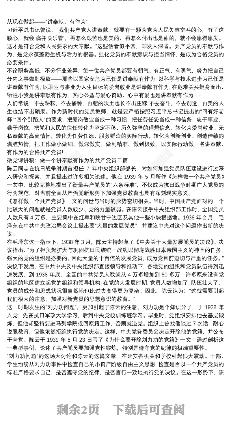 講奉獻有作為,做合格共產黨員黨課材料包含