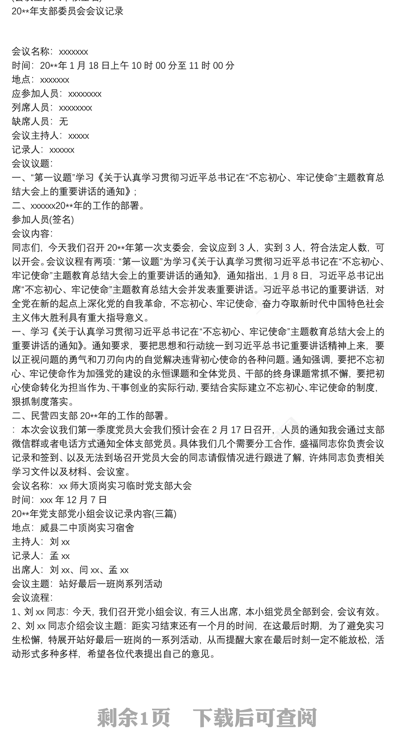 2021年黨史學習教育會議記錄2021年黨小組學黨史會議記錄2021年第三季度黨課會議記錄2021年研究黨建工作會議記錄2021奮斗百年路啟航新征程會議記錄2021年4月份黨小組會議記錄2021學習中國共產(chǎn)黨組織建設(shè)一百年支部會議記錄2021學習七一建黨一百周年講話專提學習會議記錄2021年第一季度黨課會議記錄 黨史2021年黨支部學黨史會議記錄2021年8月黨史學習教育組織生活會黨小組會議記錄2021建黨100周年七一黨日活動會議記錄2022年支委會4月份會議記錄2021支部委員學黨史會議記錄2022開組織生活會前的支委會議記錄2021學習七一建黨一百周年講話專題學習會議記錄