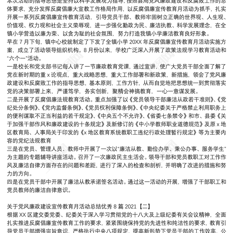 關于黨風廉政建設宣傳教育月活動總結優秀8篇2021