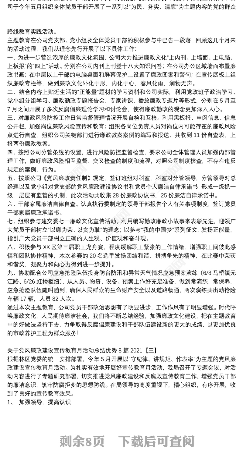 工圖網提供關于黨風廉政建設宣傳教育月活動總結優秀8篇2021供會員免費下載。更多精彩黨課PPT素材,盡在工圖網。