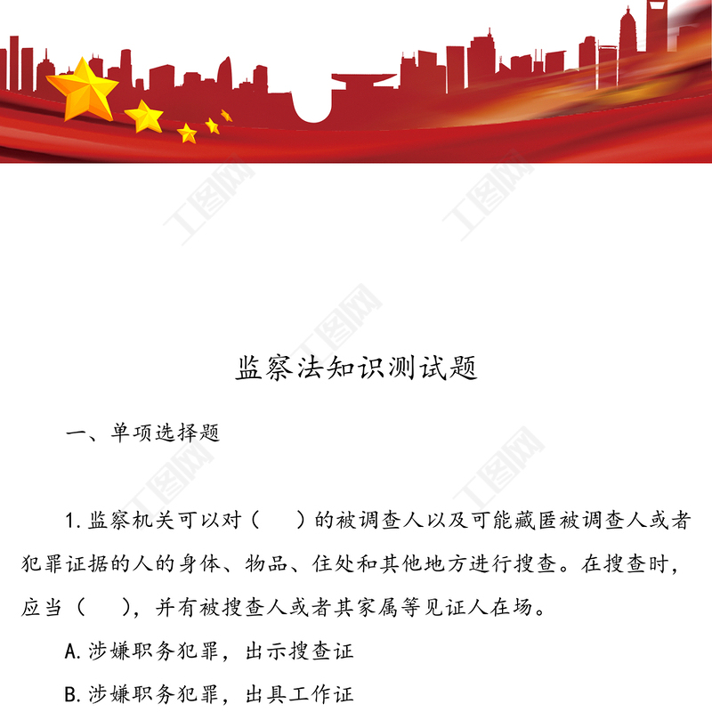工圖網提供【15題】監察法知識測試題(15題,紀檢監察業務應知應會測試題)供會員免費下載。更多精彩黨課PPT素材,盡在工圖網。