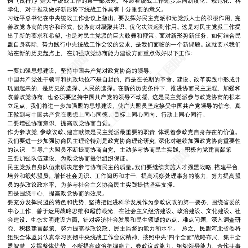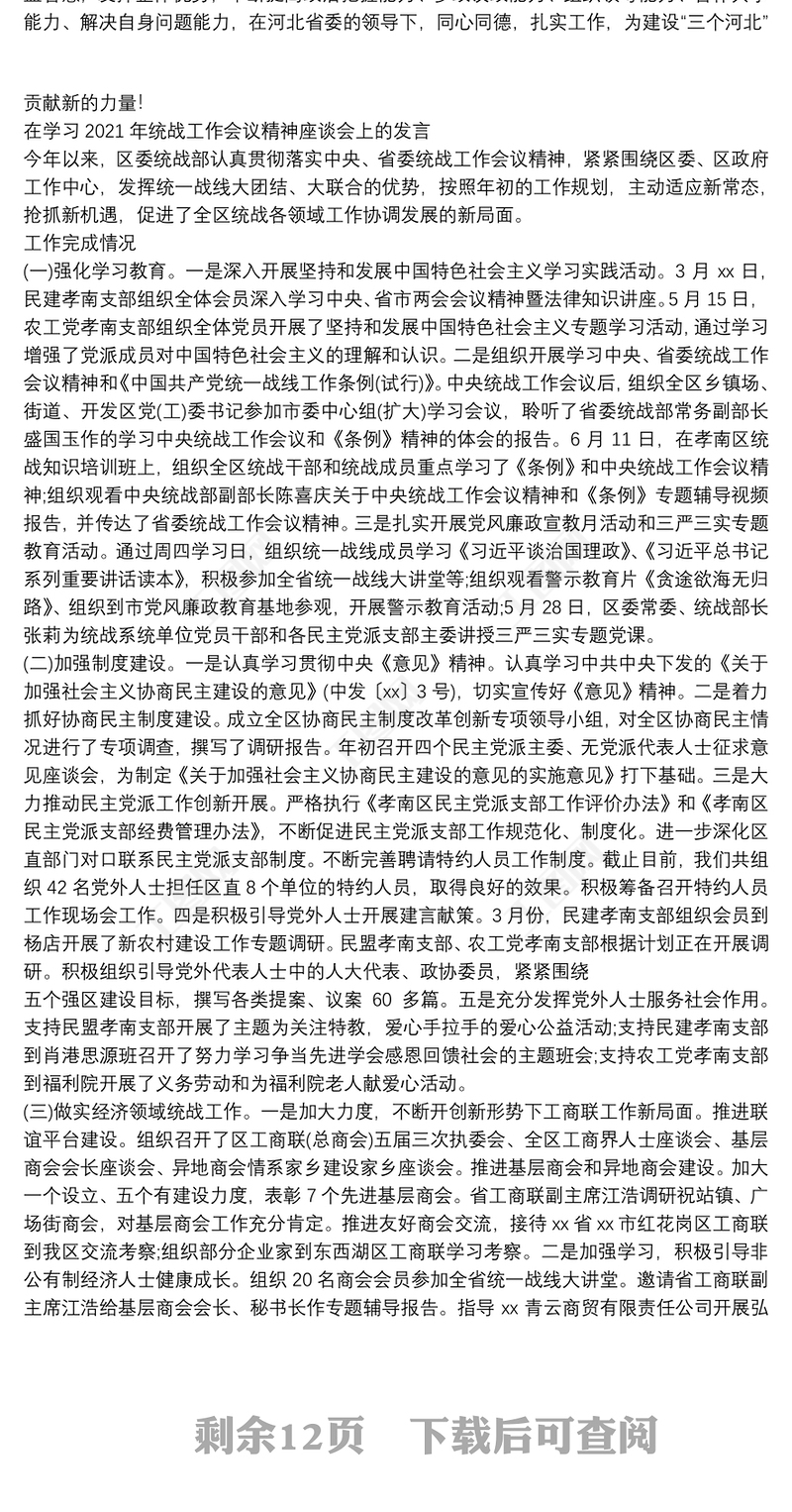 工圖網提供在學習2021年統戰工作會議精神座談會上的發言供會員免費下載。更多精彩黨課PPT素材,盡在工圖網。