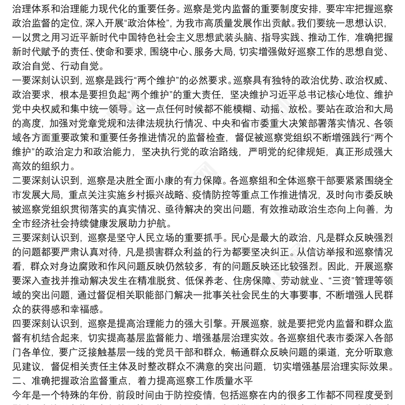 市紀委書記在2019年市委巡察工作動員部署會上的講話包含