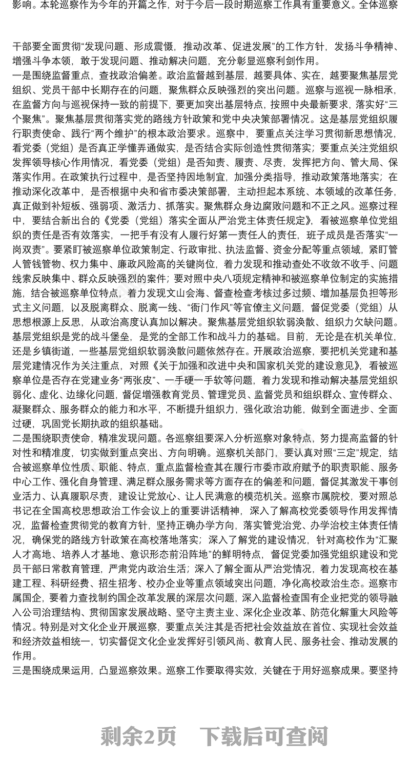 在市(州)、縣(市、區(qū))黨委巡察工作動員部署會上的講話包含