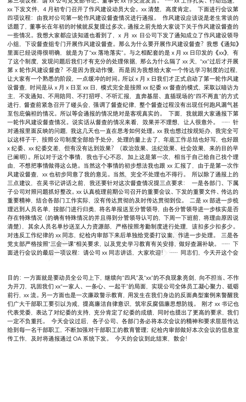 XX公司2021年度紀律作風建設暨警示教育工作會議主持詞