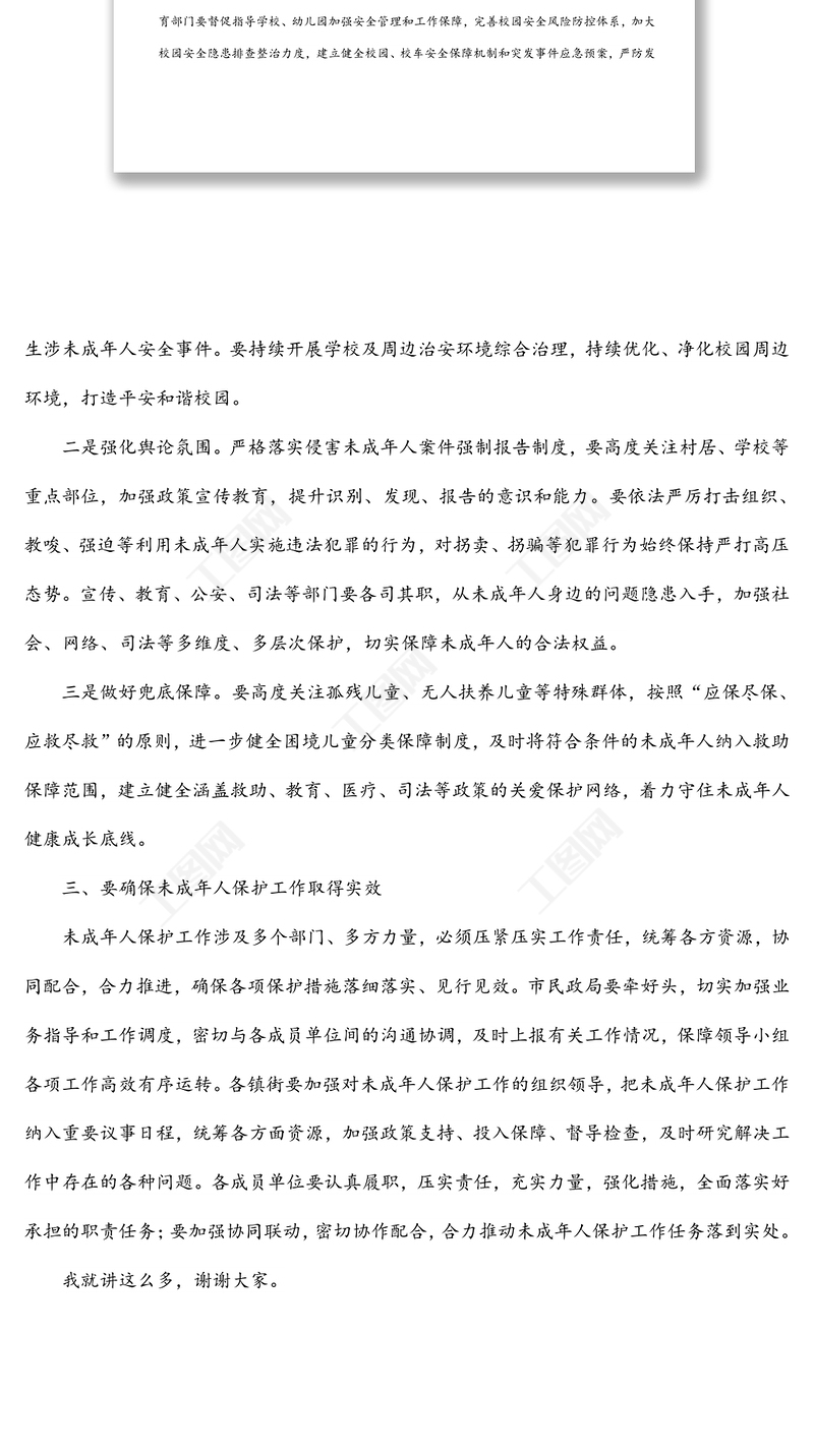 在未成年人保護工作會議上的講話提綱