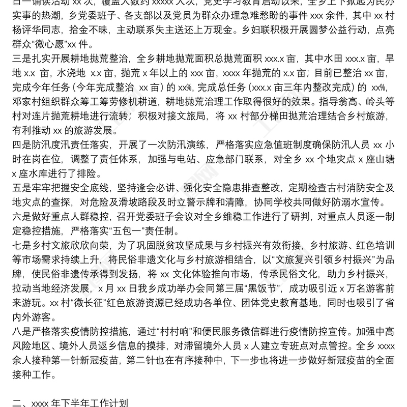 鄉鎮2021年上半年鄉村文旅發展工作總結和下半年工作計劃