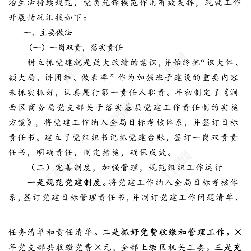 商務(wù)局黨建工作情況匯報