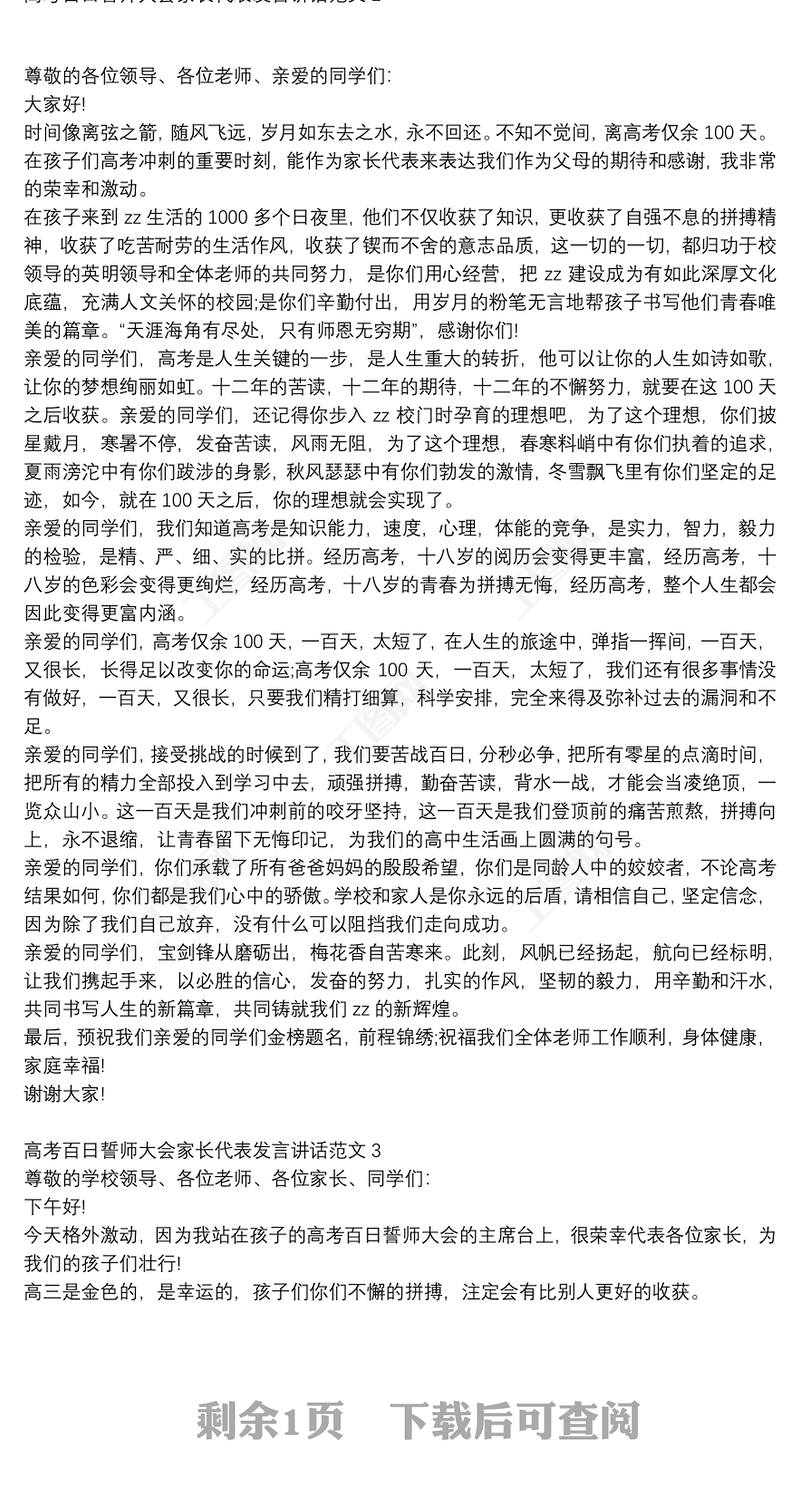 20215篇高考百日誓師大會教師代表發(fā)言稿包含