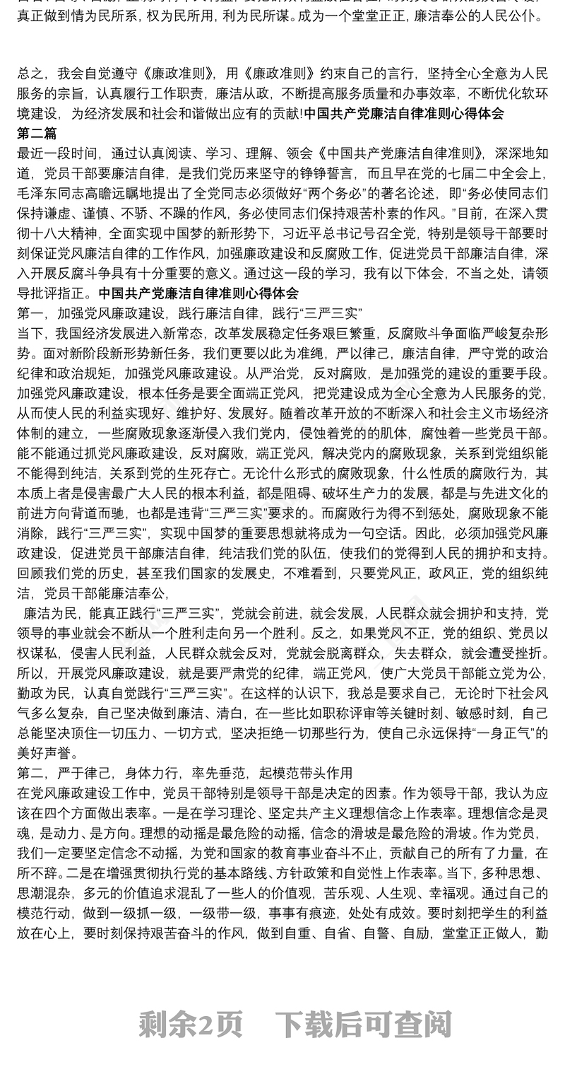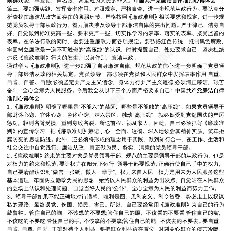 中國共產廉潔自律準則(全文)中國共產黨廉潔自律準則心得體會