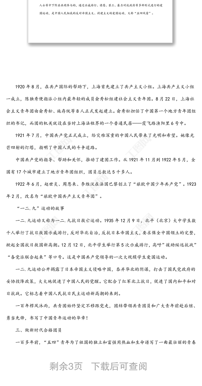 慶祝建團100周年專題團課講稿匯編(3篇)(共青團)包含