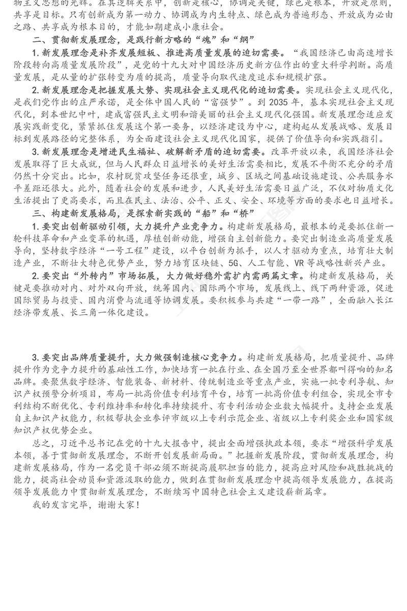 貫徹新發展理念推動經濟高質量發展專題研討發言材料包含