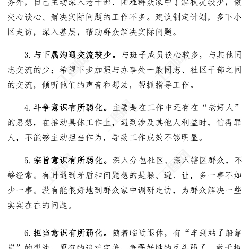 2021民主生活會、組織生活會問題清單及原因分析185條包含