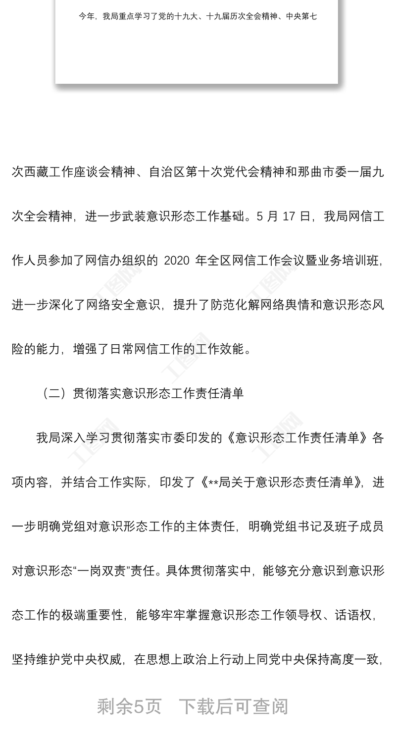 工圖網提供局黨組2022年度上半年意識形態工作報告供會員免費下載。更多精彩黨課PPT素材,盡在工圖網。