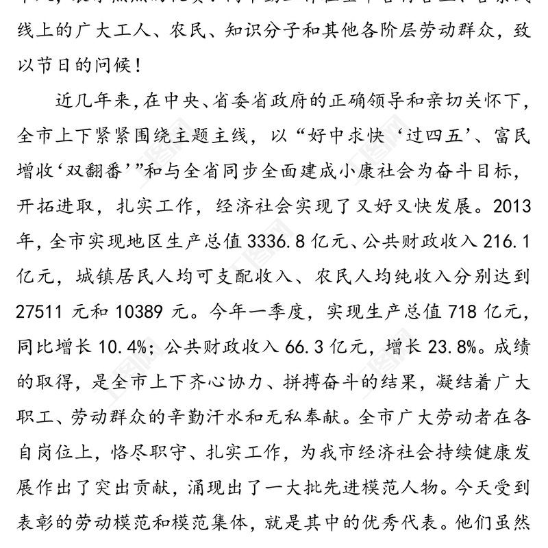在全市慶?!拔逡弧眹H勞動節暨勞動模范、模范集體表彰大會上的講話,國際勞動節,公文范例,領導述職報告,機關公文寫作 Array