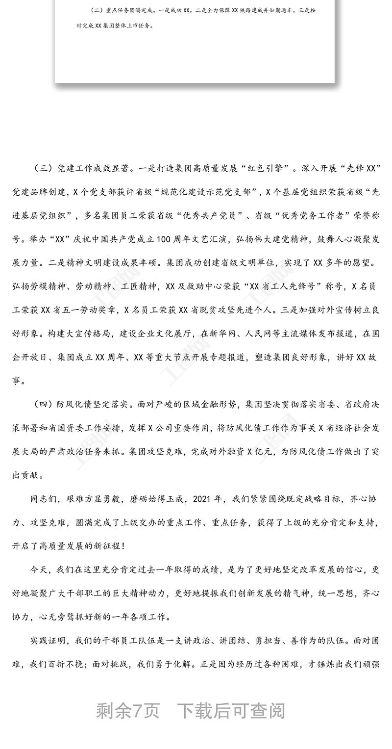 國有企業主要領導在2022年度工作會上的總結講話,國有企業主要領導在2022年度工作會上的總結講話 Array