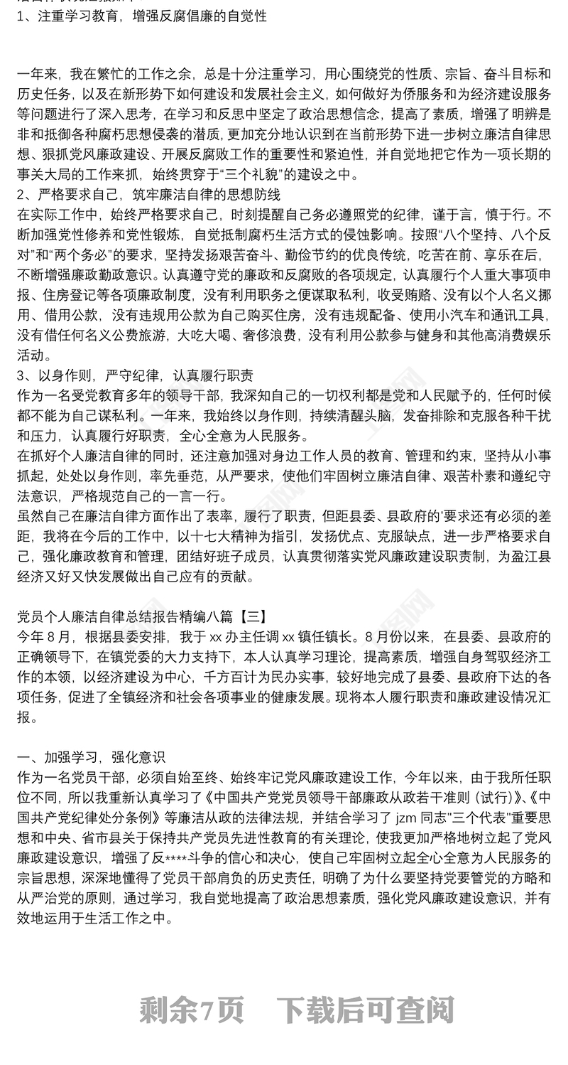 2021黨員個人廉潔自律自查自糾報告精選模板包含