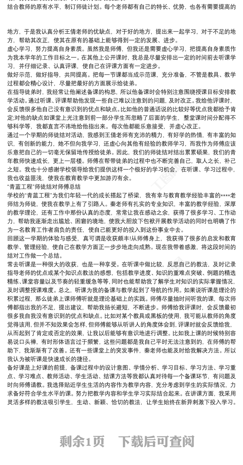 “青藍工程”師徒結對師傅總結三篇包含