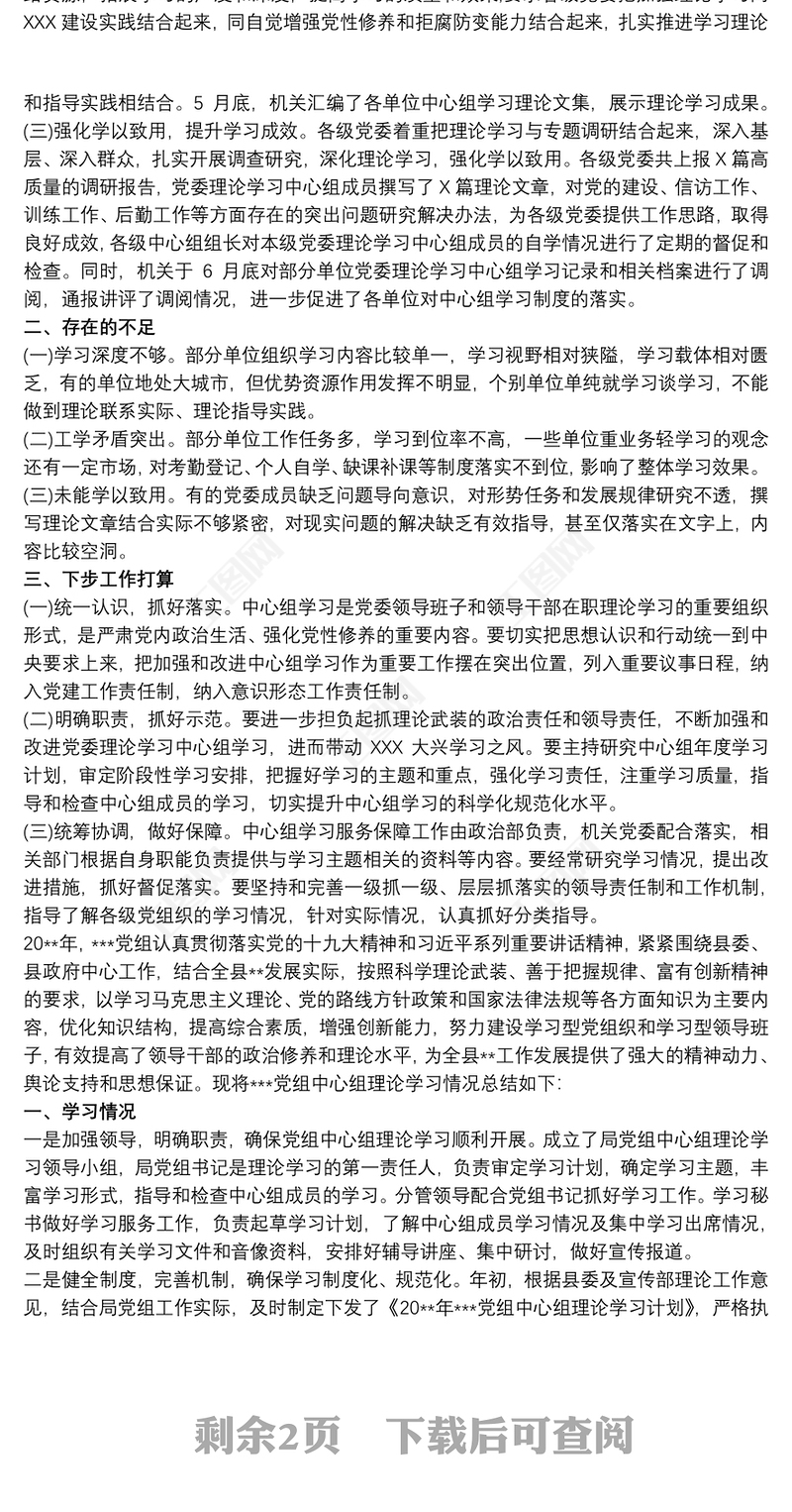 2019年度XX黨組理論中心組學習情況總結報告包含