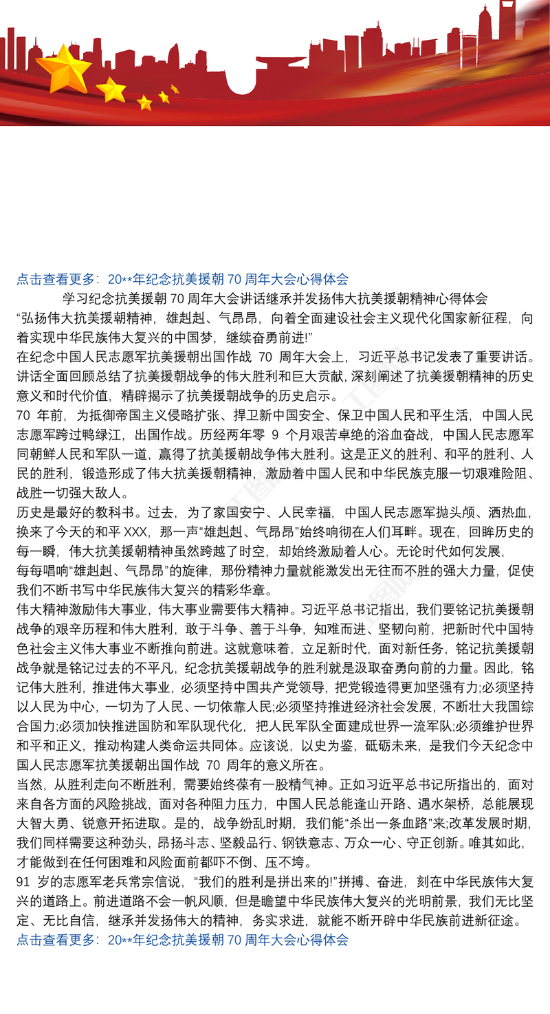 學習紀念抗美援朝70周年大會講話繼承并發揚偉大抗美援朝精神心得體會 Array