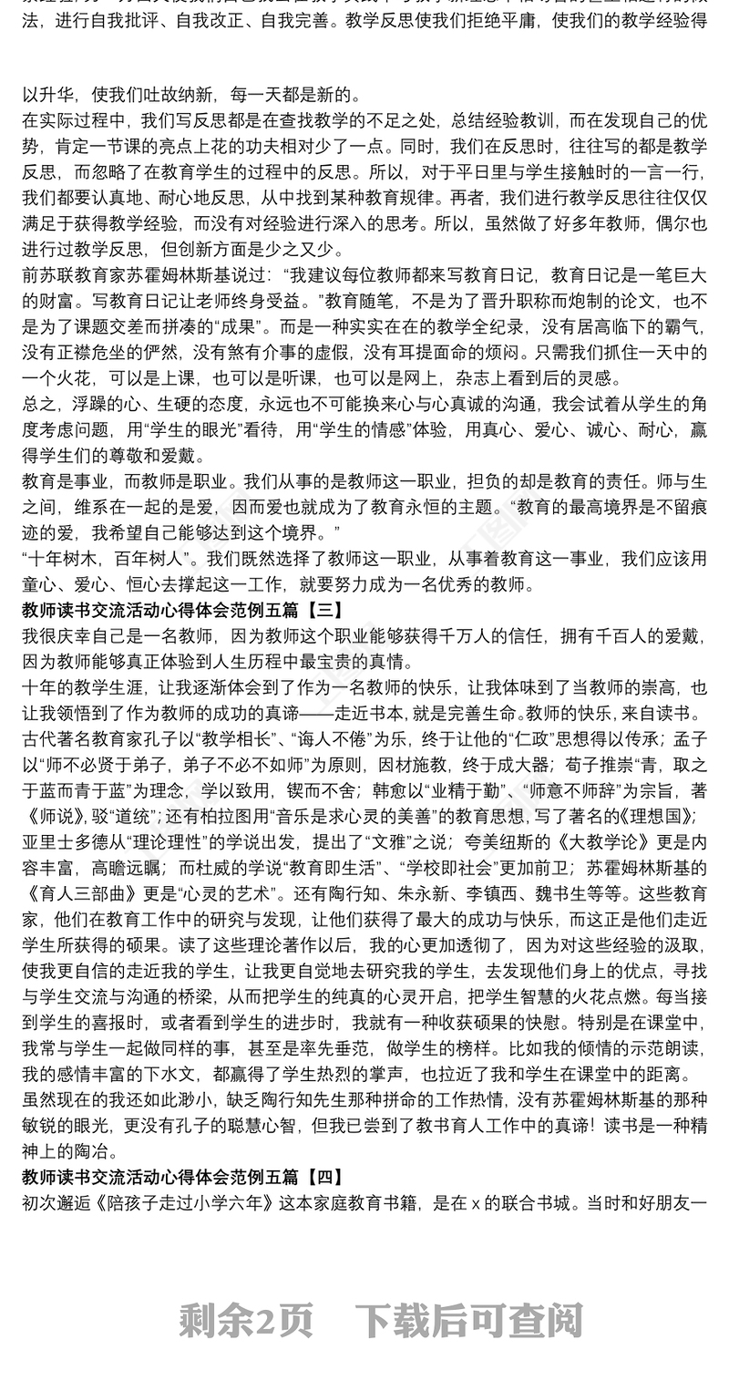 工圖網提供教師讀書交流活動心得體會范例五篇供會員免費下載。更多精彩黨課PPT素材,盡在工圖網。