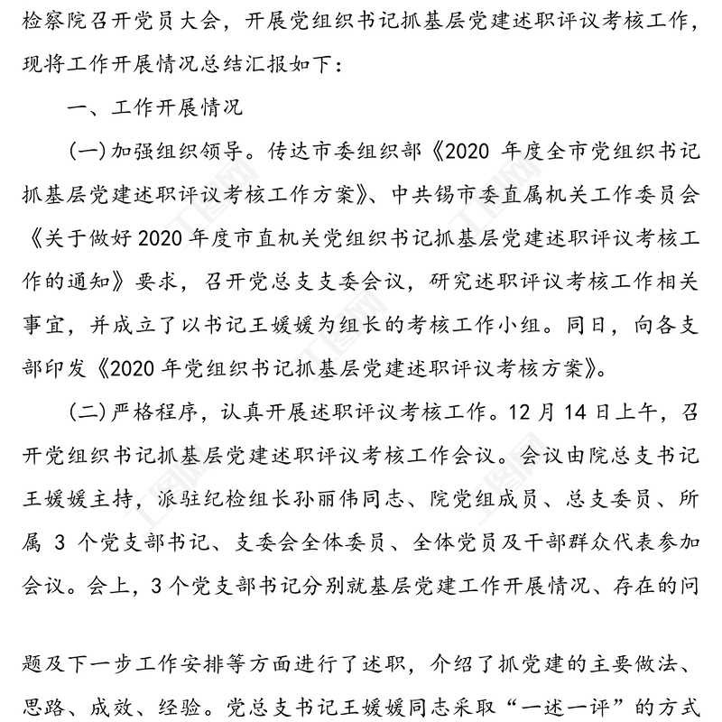 2020年檢察院黨組織書(shū)記抓基層黨建述職評(píng)議考核工作總結(jié),基層黨建,公文 Array