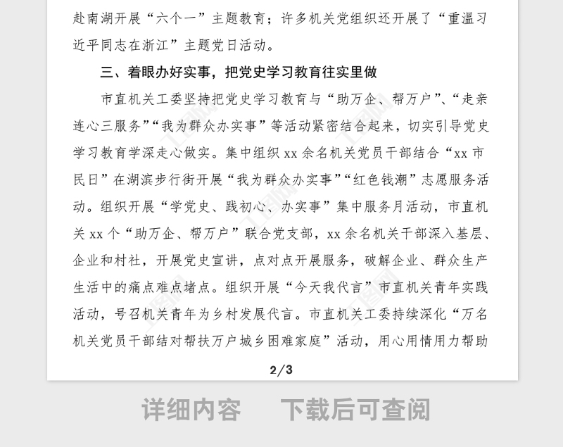 工圖網提供黨史學習教育總結市直機關工委黨史學習教育進展情況匯報范文工作總結匯報報告供會員免費下載。更多精彩黨課PPT素材,盡在工圖網。