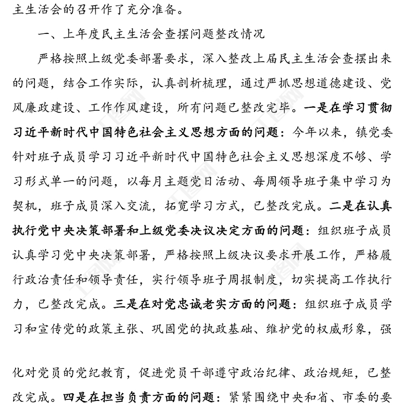 鄉(xiāng)鎮(zhèn)黨委領導班子民主生活會對照檢查材料范文,對照檢查材料,公文 Array