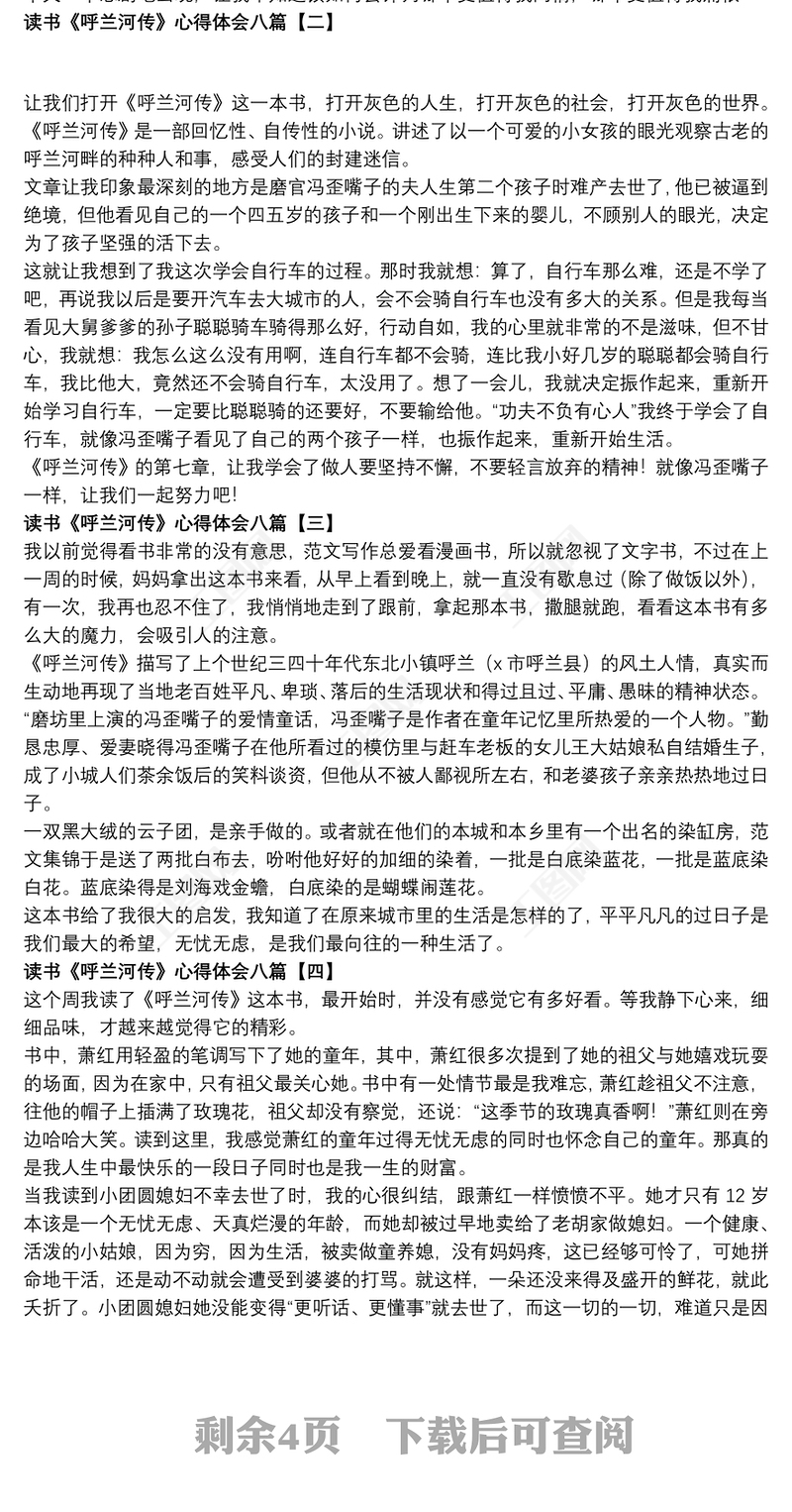 首頁 > WORD文檔 > 心得體會 > 讀書《呼蘭河傳》心得體會八篇.DOCX 【圖片、文字、動畫均可編輯】