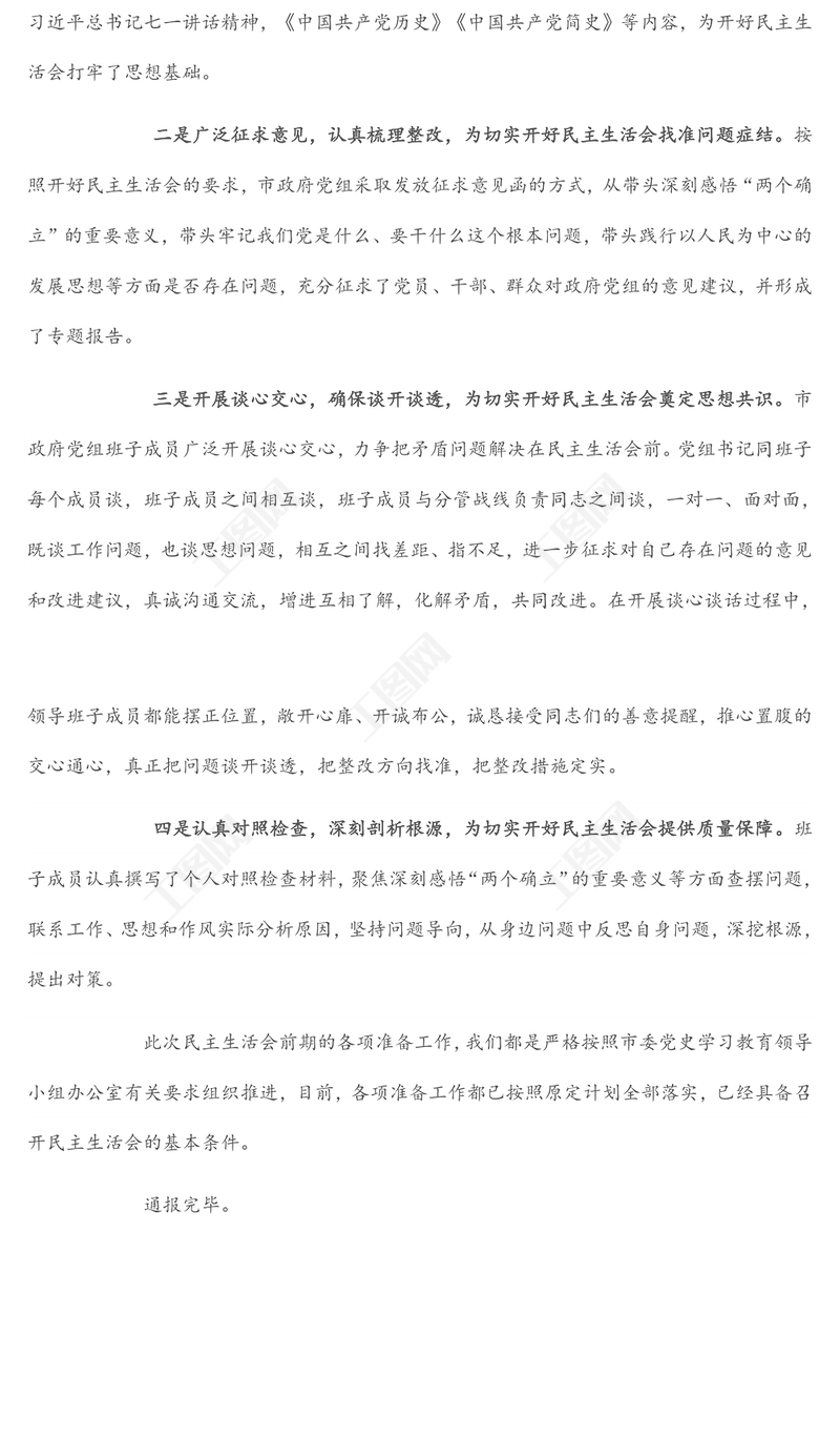 工圖網提供黨史學習教育專題民主生活會會前準備情況通報供會員免費下載。更多精彩黨課PPT素材,盡在工圖網。