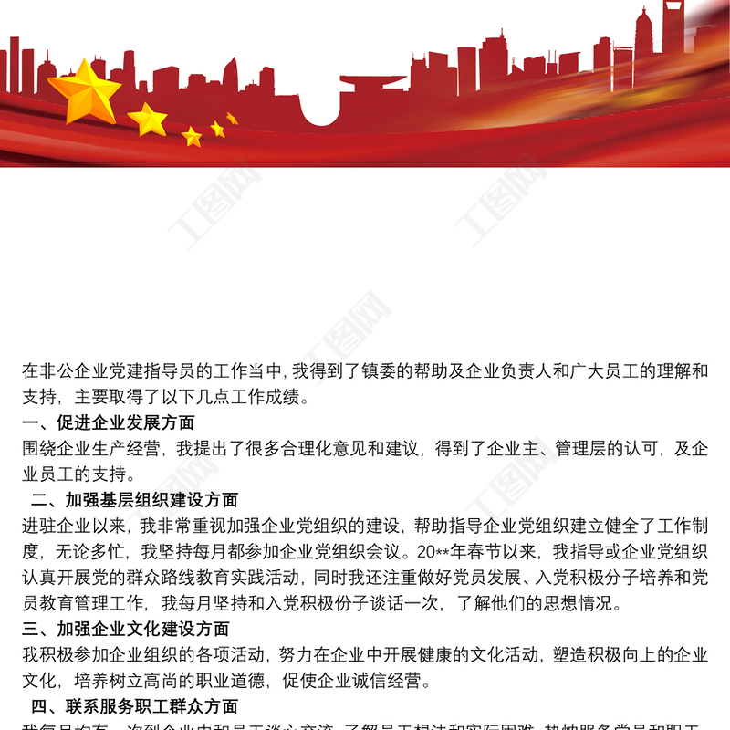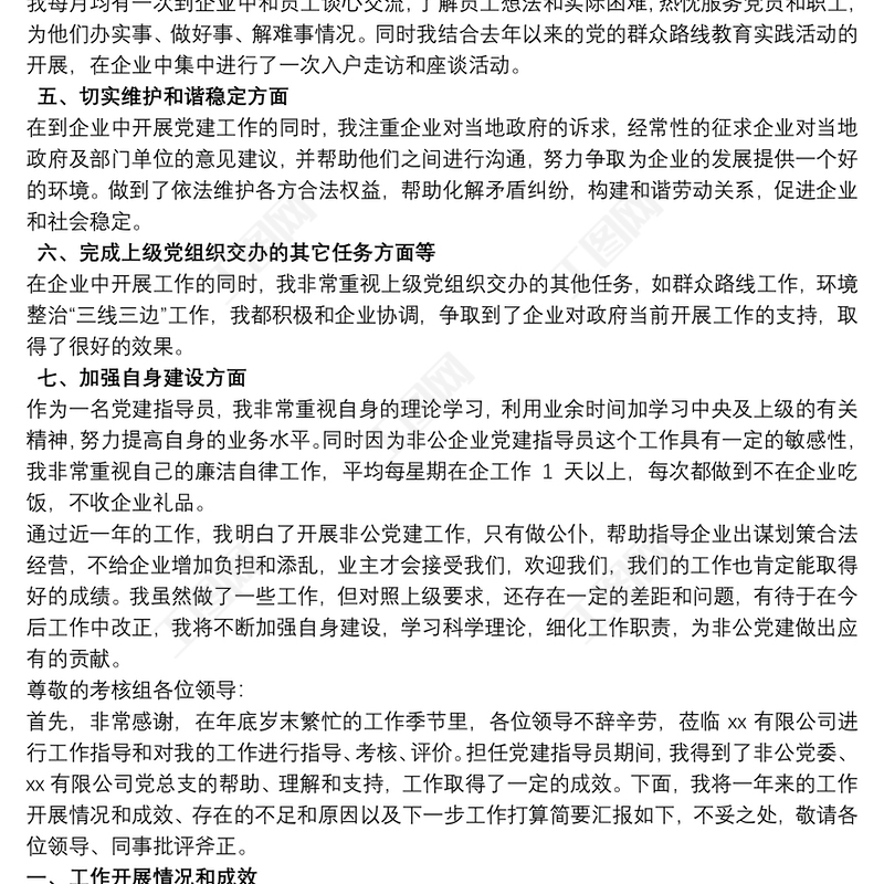 工圖網(wǎng)提供非公企業(yè)黨建指導(dǎo)員述職報(bào)告工作總結(jié)三篇供會(huì)員免費(fèi)下載。更多精彩黨課PPT素材,盡在工圖網(wǎng)。